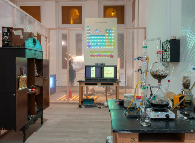 Drawing on her own autobiography and background in data analytics, Brooklyn-based artist Char Jeré's (b. 1983, Rochester, NY) practice is rooted in what they have coined as Afro-fractalism, a philosophy that builds on the foundations of Afrofuturism. In a practice that spans sound, painting, installation, and video, Jeré proposes time as non-linear, and multidimensional, connecting lived experiences with the inherited histories of their ancestors. Examining both the connections, and fractures within Black diasporic history, Jeré’s work bridges the past, present, and the future to reshape and reclaim narratives around race and technology, particularly how technology’s promise of neutrality has often disguised its end use as a tool of harm.